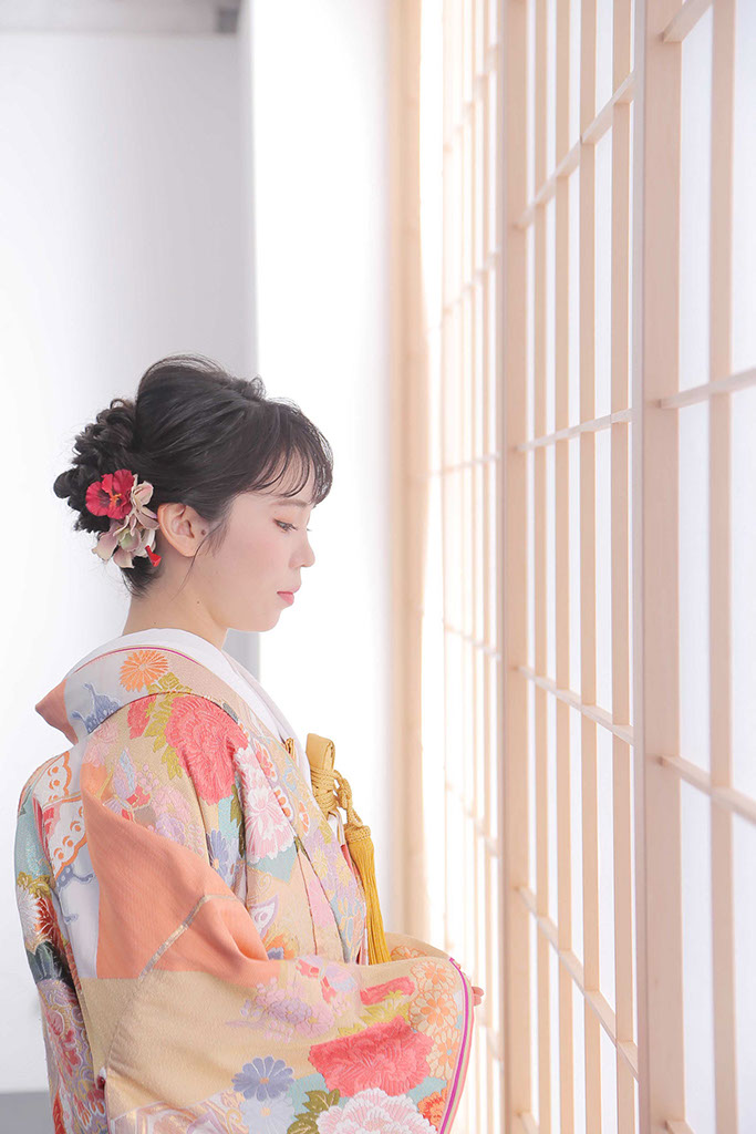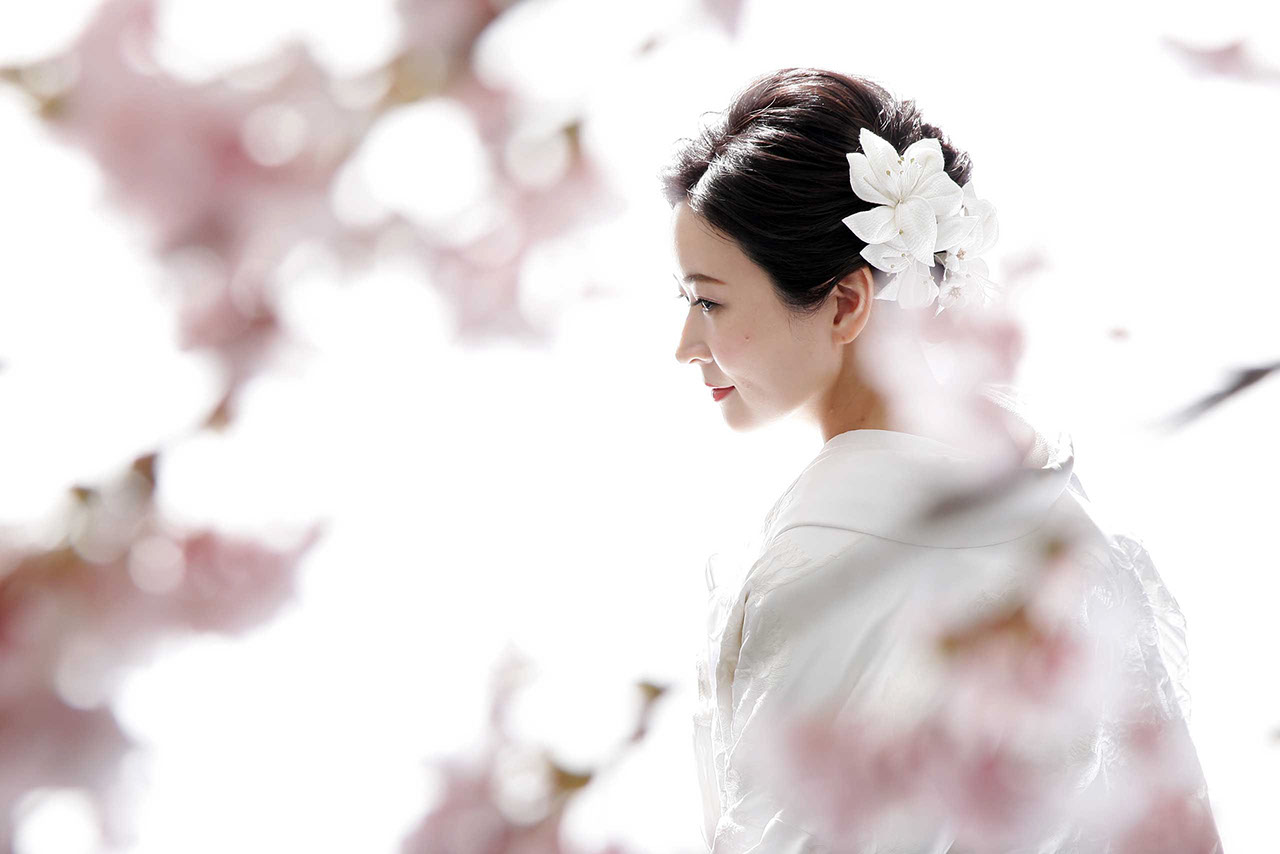 和装のために設えられたスタジオには、衣装に合う背景色や障子・畳・桜などをご用意