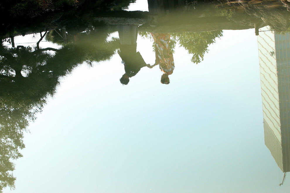 悠久の時を過ごしてきた松と、これからのふたりが写る