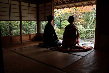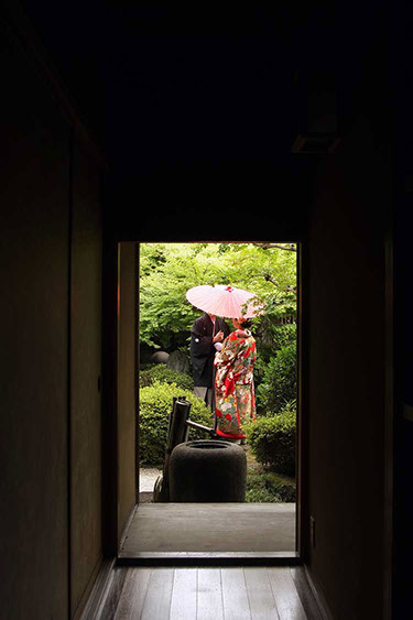当日雨天:茶室内・番傘の下で撮影