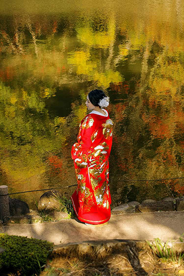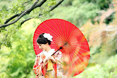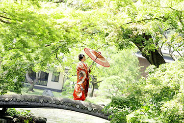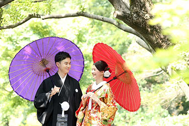 当日雨天:園内屋根の下・番傘・スタジオで撮影