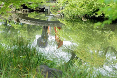 太鼓橋に覆いかぶさる紅葉は圧巻