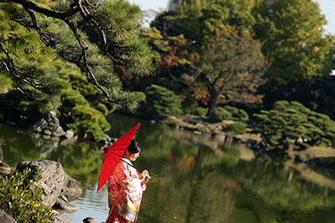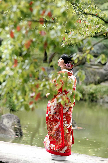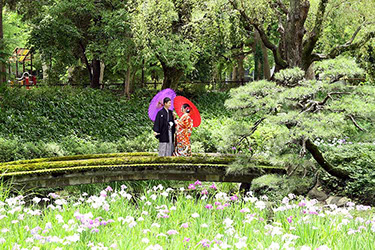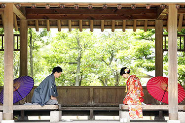 当日雨天:園内屋根の下・番傘・スタジオで撮影