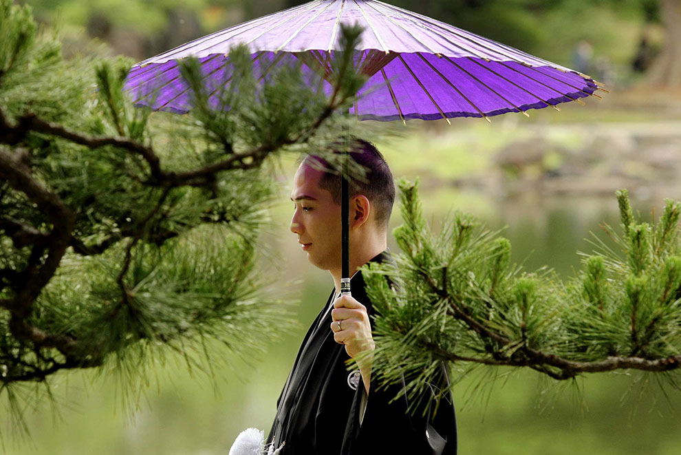 悠久の時を過ごしてきた松と、これからのふたりが写る