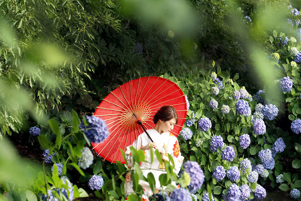 当日雨天:園内屋根の下・番傘の下・スタジオで撮影